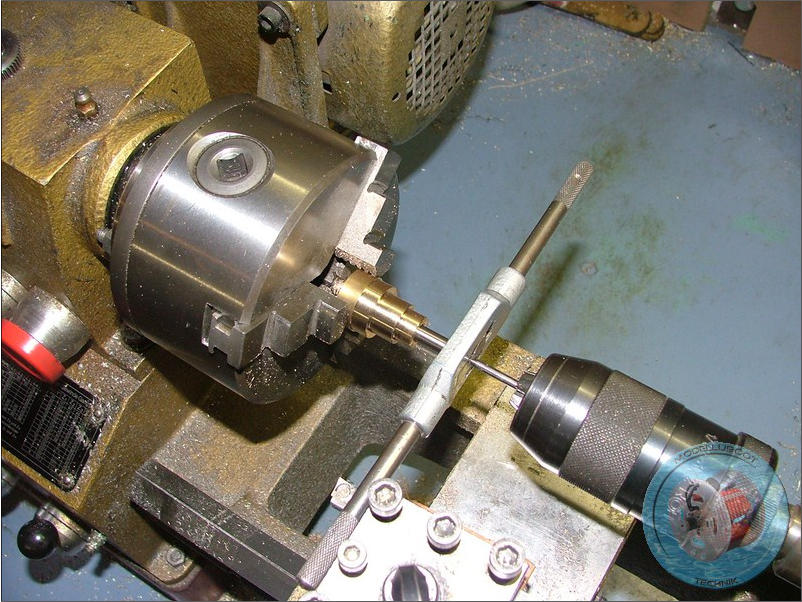 Drehbank eingestochen. Nach dem Verkleben folgte dann der